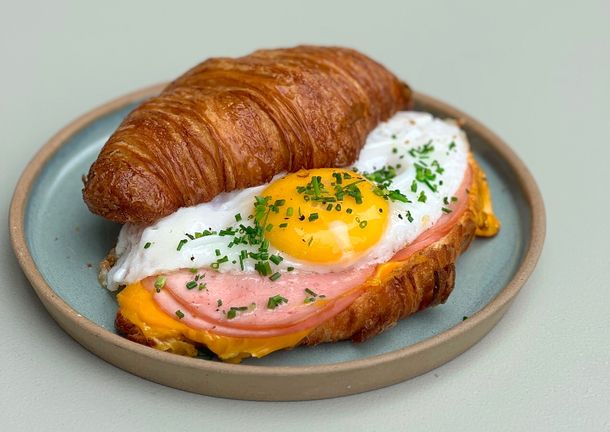 Otra tentación es el Croissant McMuffin, un homenaje a los sabores del clásico desayuno americano, con cheddar, lomito, huevo a la plancha y un toque de ciboulette. Un bocado que fusiona lo artesanal con el placer reconfortante de una combinación irresistible.