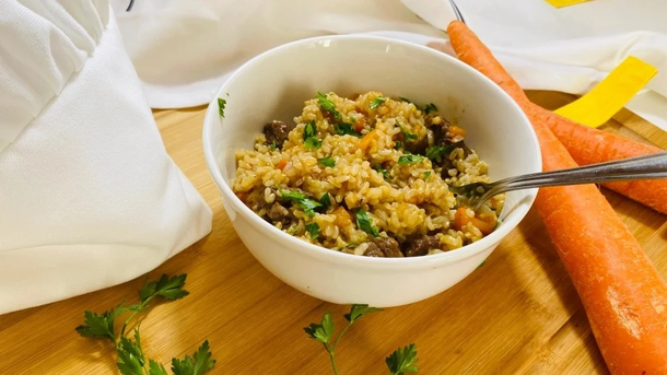 Guiso de quinoa tricolor con calabaza asada y especias marroquíes: ideal para quienes buscan una opción vegetariana con carácter. El toque dulce de la calabaza se equilibra con comino, jengibre y canela.