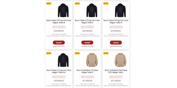 En Coto, los descuentos alcanzan el 50% en buzos para caballeros. Por ejemplo, el Buzo Caba C/Cap Est Negro en todos los talles bajó de $39.999 a $19.999,50. Otros modelos como el Buzo Caballero Estampa C/C Beige y el Liso Basic Can Beige también se encuentran a mitad de precio.