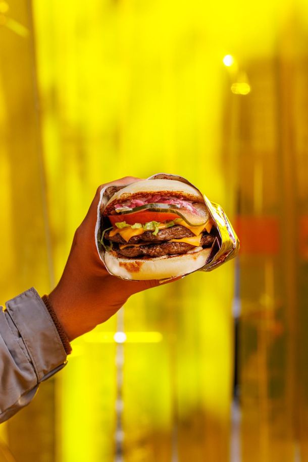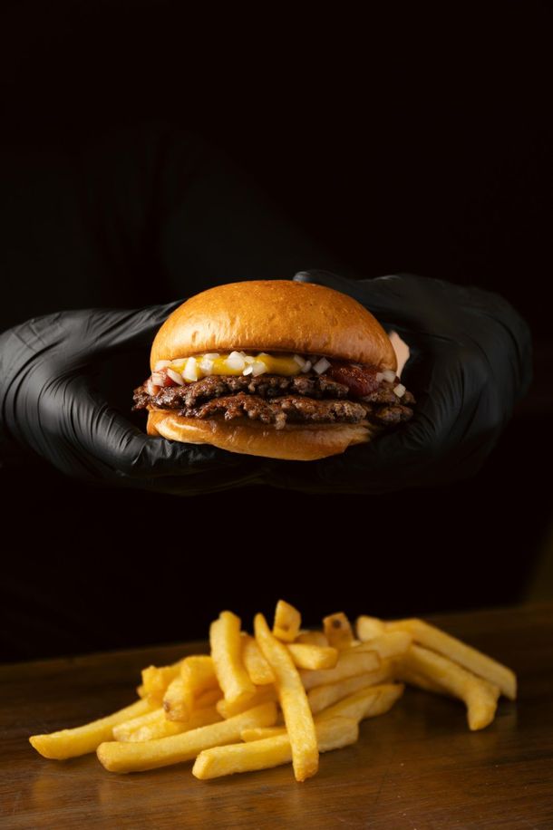 Shivo’s apuesta por un guiño cultural con su Persiana Americana, que además de su atractivo nombre, sorprende con una guarnición distinta: papas noisette en lugar de fritas clásicas, un gesto sencillo pero suficiente para hacerla memorable. Doble carne, doble cheddar, ketchup, mostaza, cebolla cruda en brunoise y pickles. Se acompaña con gaseosa.