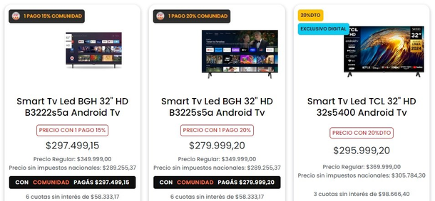 Las ofertas disponibles abarcan modelos de 32, 43 y hasta 50 pulgadas, con sistemas Android TV y Google TV, lo que las convierte en opciones atractivas para quienes buscan funcionalidad y conectividad a un precio accesible.