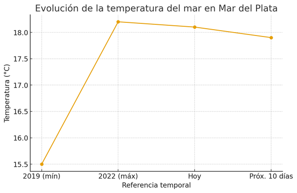 Según datos oficiales, el récord histórico reciente para esta fecha se dio en 2022, cuando el mar llegó a 18.2°C. En el otro extremo, el valor más frío se midió en 2019, con apenas 15.5°C, casi tres grados menos que hoy.
