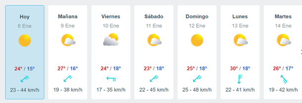 Para la jornada de este miércoles 8 de enero todos los pronosticadores coinciden en que será una jornada a pleno sol, con temperaturas máximas que se acercarán a los 26 grados.