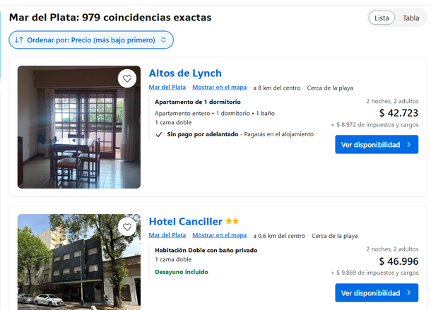 Lo mismo sucede a la hora de conseguir hoteles y en Mar del Plata o en Tandil, hay ofertas para las dos noches del fin de semana largo para 3 o 4 personas por 60 mil pesos total. Sin embargo, hay hoteles y cabañas para todos los que quieran ir a último momento.