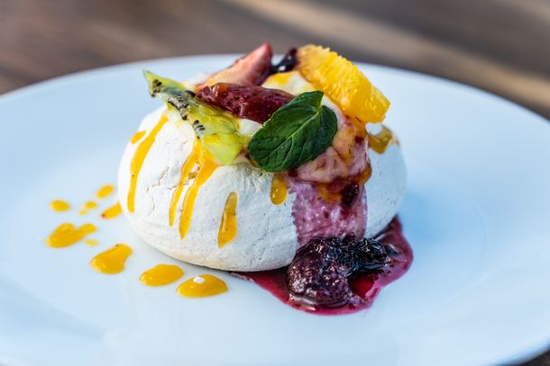 El capítulo dulce propone opciones como el flan casero de leche ahumada, cremoso de chocolate con mousse de banana y pavlova con curd de limón y frutas frescas.