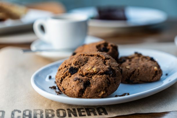 El apartado de Platitos Carboneros merece una mención especial: una selección de opciones pensadas para el centro de la mesa, entre las que sobresalen las anchoas de Mar del Plata con pickles de apionabo, las empanadas de langostinos con queso fresco, puerros y cilantro, la provoleta asada con paté de morrones y nuez o el pan de masa madre con oliva ahumada. También hay sándwiches que elevan lo cotidiano —como el Club Sandwich de vitello o la pita de gírgolas— y clásicos porteños como el choripán, elaborado con técnica y sello propio.