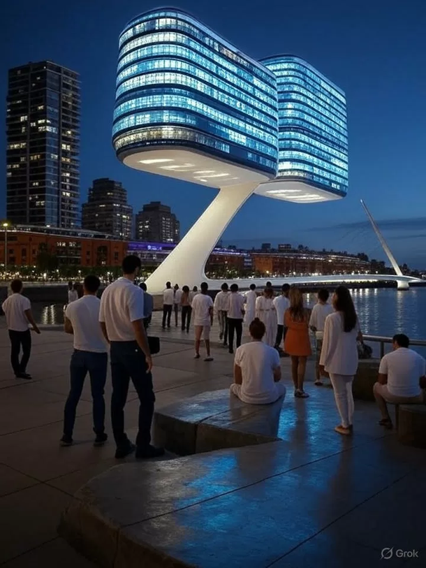 Buenos Aires se transformaría en una megaciudad hiperconectada, con edificios inteligentes, redes de transporte autónomas y tecnología 6G. La IA imagina un paisaje urbano donde rascacielos de vidrio y acero conviven con íconos clásicos como el Teatro Colón. Sin embargo, la desigualdad también persistiría: zonas exclusivas como Puerto Madero serían fortalezas tecnológicas, mientras que barrios periféricos dependerían de economías informales y reciclaje digital.