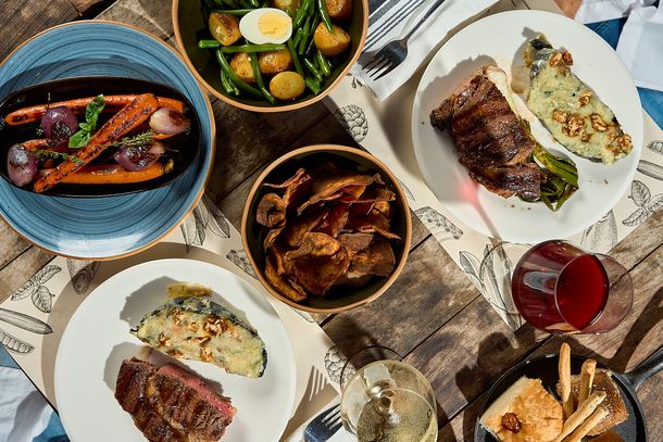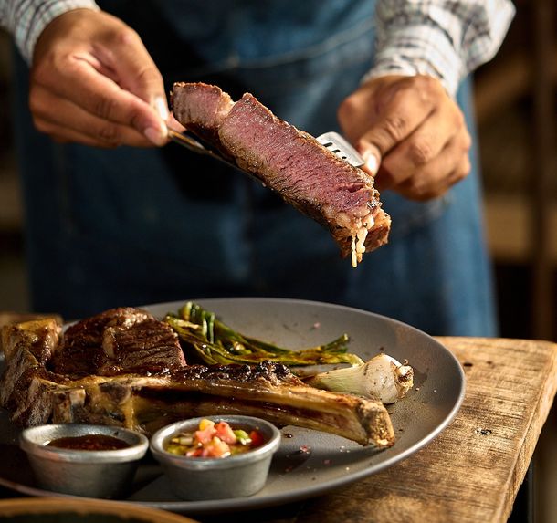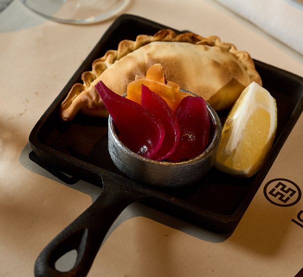 Para eventos, la cocina despliega menús cerrados y experiencias personalizadas que giran en torno al fuego, el horno de barro y los productos de estación. Entre las opciones más elegidas aparecen recepciones con empanadas de carne cortada a cuchillo horneadas en barro, tablas de quesos artesanales con dulces caseros y frutos secos, y estaciones de brasas con cortes seleccionados. En los platos principales se destacan preparaciones como la ceja de ojo de bife para compartir, el lomo tournedo Angus o el cochinillo deshuesado cocido a baja temperatura, acompañado con puré de manzanas ácidas.