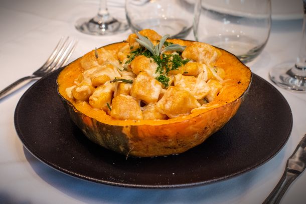 En Liniers, Viejo Patrón suma a su reconocida propuesta de carnes de pastura y achuras de primer nivel un guiño a la tradición del 29 con una alternativa que conquista a primera vista: los ñoquis de zapallo, servidos dentro de una cabutia. Esta original presentación convierte un clásico en una experiencia distinta, ideal para disfrutar en cualquier momento. Elaborados con queso parmesano rallado, los comensales pueden elegir entre salsas pomodoro, bolognesa, crema, rosa o champiñones para acompañarlos. Además, este plato integra el menú ejecutivo del restaurante liderado por el sommelier de carnes Julio Gagliano, que incluye bebida sin alcohol y un cierre dulce con café o postre a elección, entre flan de vainilla o helado.
