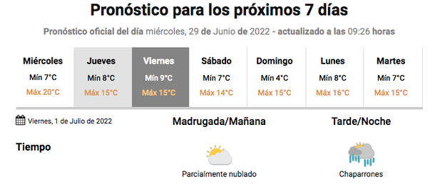Para el mes de julio por ahora se pronostican lluvias solo para cuatro días.