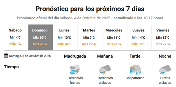 Las lluvias volverán a decir presente durante la jornada de este domingo 5 de octubre de 2025 en la Ciudad de Buenos Aires y el Conurbano Bonaerense, con tormentas fuertes y posible caída de granizo, según informó en las últimas horas el Servicio Meteorológico Nacional (SMN).