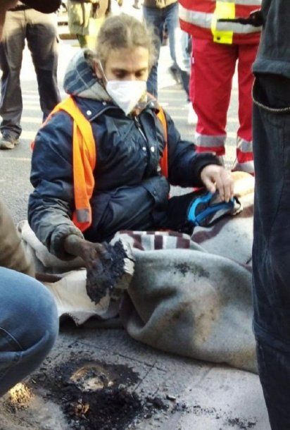 Alemania: activista se pegó al asfalto y le quedó una mano de piedra