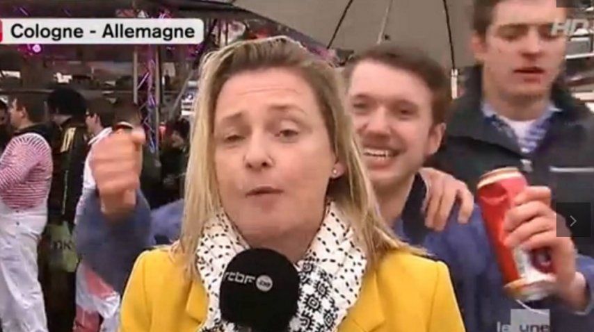 Una reportera del canal belga RTBF sufrió el acoso sexual de dos hombres durante la presentación en vivo de su informe desde Colonia, Alemania, donde el jueves pasado arrancó el festejo anual conocido como el Carnaval de las Mujeres.