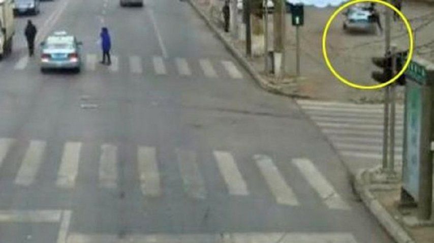 Todo sucedió en una ciudad china llamada Dalian y, cuando el conductor se subió sobre la vereda, el oficial se cayó y terminó en el hospital.