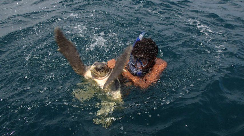 Un equipo de biólogos marinos estadounidense rescató a una tortuga de las aguas del Golfo Dulce, en Costa Rica, para poder extraerle una pajita de plástico que el animal tenía atorado en su nariz y le causaba dolor y molestia para respirar.