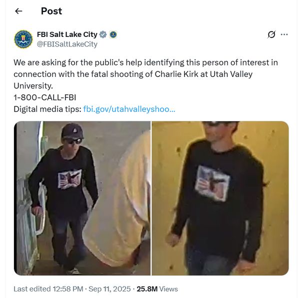 En sus redes sociales, la agencia difundió un formulario y un mensaje dirigido a la ciudadanía: "Solicitamos la ayuda del público para identificar a esta persona de interés en relación con el tiroteo fatal de Charlie Kirk en la Universidad del Valle de Utah. 1-800-LLAME AL FBI", sostuvieron desde la cuenta oficial en X, ex Twitter, reforzando la importancia de la colaboración ciudadana para avanzar en la investigación.