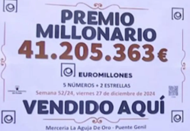 Un boleto premiado con 41 millones de euros en Puente Genil, Córdoba, sigue sin ser reclamado, y el plazo para hacerlo se agota el 27 de marzo.