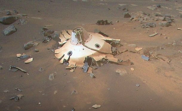 El helicóptero de reconocimiento Ingenuity, de la NASA, realizó un descubrimiento sorprendente en Marte: restos de una nave espacial esparcidos por la superficie del planeta rojo.