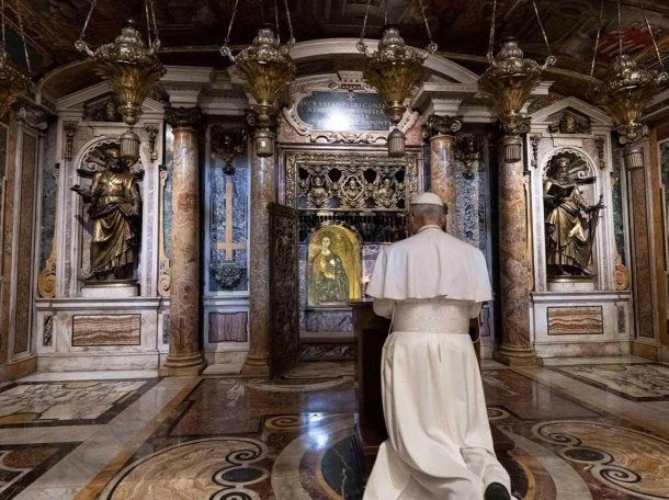 Otra de las fotos lo muestran en las Grutas Vaticanas para celebrar la Misa en el altar junto a la tumba de Pedro.