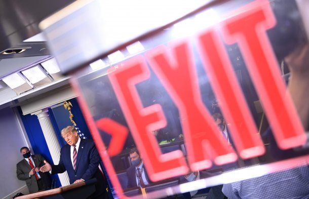LAS FOTOS VIRALES CON UN "EXIT" MOSTRÁNDOLE LA SALIDA A DONALD TRUMP