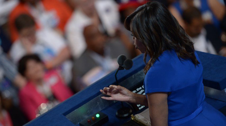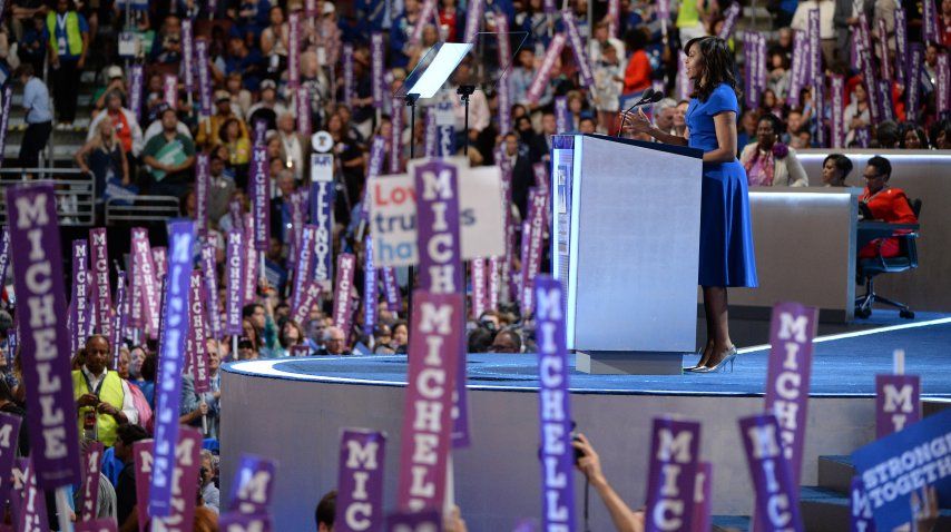 Al declarar su apoyo a Clinton, Michelle Obama destacó, con la voz quebrada por la emoción, que gracias a ella sus dos hijas "dan por hecho" que una mujer puede ser la próxima presidenta de EEUU.