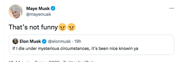 Maye Musk, la madre del flamante dueño de la red social Twitter, Elon Musk, no tuvo mejor idea que ponerle los puntos a su hijo que hacerlo a través de la red social del pajarito.