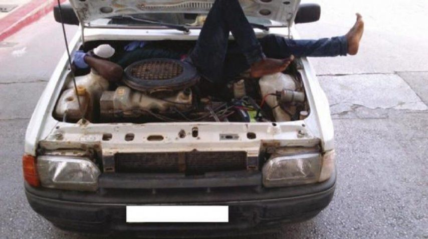 Increíble: inmigrante cruzó la frontera en motor de auto
