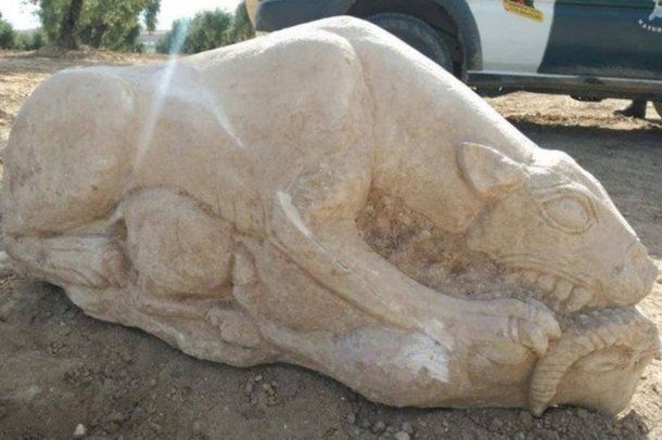 Los agentes del Servicio de Protección de la Naturaleza (Seprona) de la Guardia Civil desenterraron la pieza arqueológica con la asistencia de técnicos de la Delegación de Cultura de la Junta de Andalucía. Luego, los especialistas determinaron que se trataba de una estatua de una leona íbera comiéndose una cabra, en excelente estado de conservación, que data del siglo VI a.C.