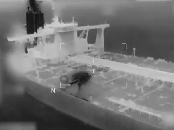 El petrolero, llamado Marinera Bella 1, viajaba desde Irán a Venezuela, pero regresó al Atlántico después de intentar evadir el bloqueo estadounidense dirigido a los petroleros afectados por sanciones que operan cerca de aguas venezolanas. En las últimas horas, la cadena de noticias estatal rusa RT publicó dos fotografías borrosas que mostraban un helicóptero aproximándose al petrolero, indicando que se estaba llevando a cabo una operación.