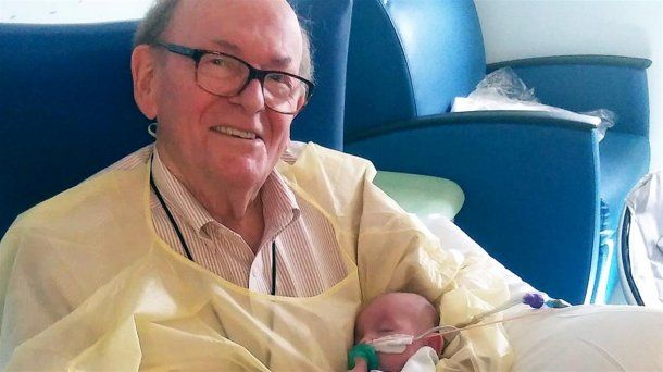 Conmovedor: un abuelo pasa la noche sosteniendo bebés prematuros para que no estén solos