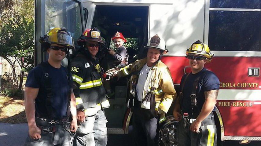 Pero eso no es todo. Los bomberos y la policía de la localidad se enteraron y al día siguiente, con permiso de los padres, visitaron a Glenn.