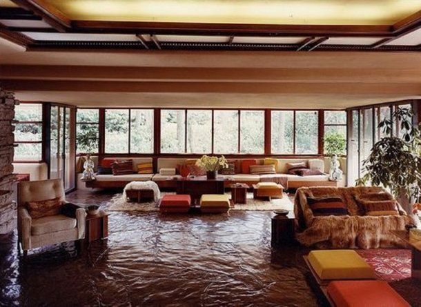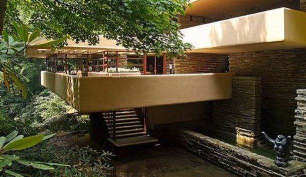 Construida en la Reserva Natural de Bear Run, Pensilvania, la Casa de la Cascada se encuentra a 1298 metros sobre el nivel del mar a cargo del arquitecto Frank Lloyd Wright. En el mismo terreno hay un río que corre en el lugar y cae abruptamente 30 metros y su estilo define la relación entre hombre, arquitectura y naturaleza.
