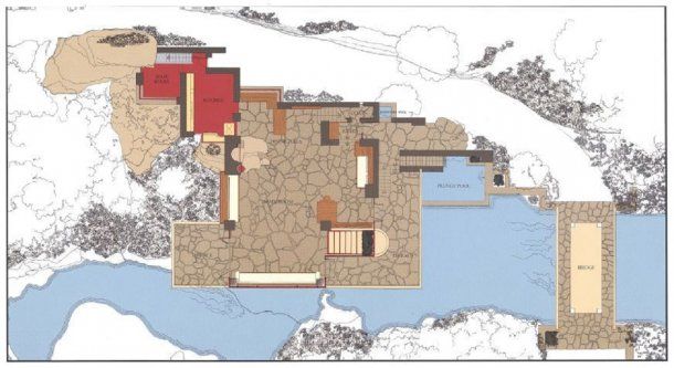 Wright era admirador de la arquitectura japonesa, lo que fue clave para el diseño de la casa, al igual que en sus demás obras. De este modo, buscó crear armonía entre el hombre y la naturaleza, y la integración de la casa con la cascada es un claro ejemplo, ya que el sonido de la caída se escucha en toda la construcción.