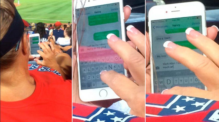 "Voy a estar desnuda, acostada en el suelo", se puede leer en los mensajes de la mujer. "Mark Allen te am... tanto", tipeó la esposa, mientras su marido sólo tenía ojos para el partido entre los Atlanta Braves y los Los Ángeles Dodgers.