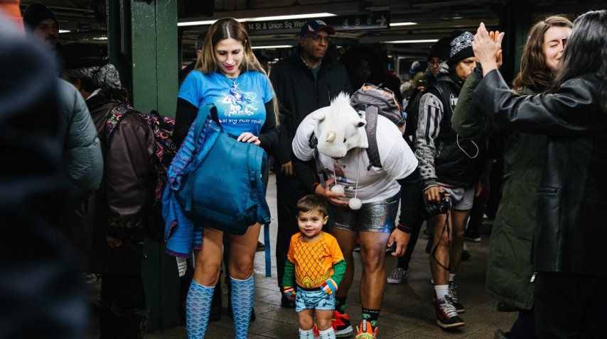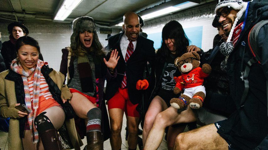 Centenares de neoyorquinos desafiaron este domingo al frío al viajar en subte sin pantalones como parte del evento anual "No Pants Subway Ride", que se celebra cada enero en distintas ciudades del mundo.