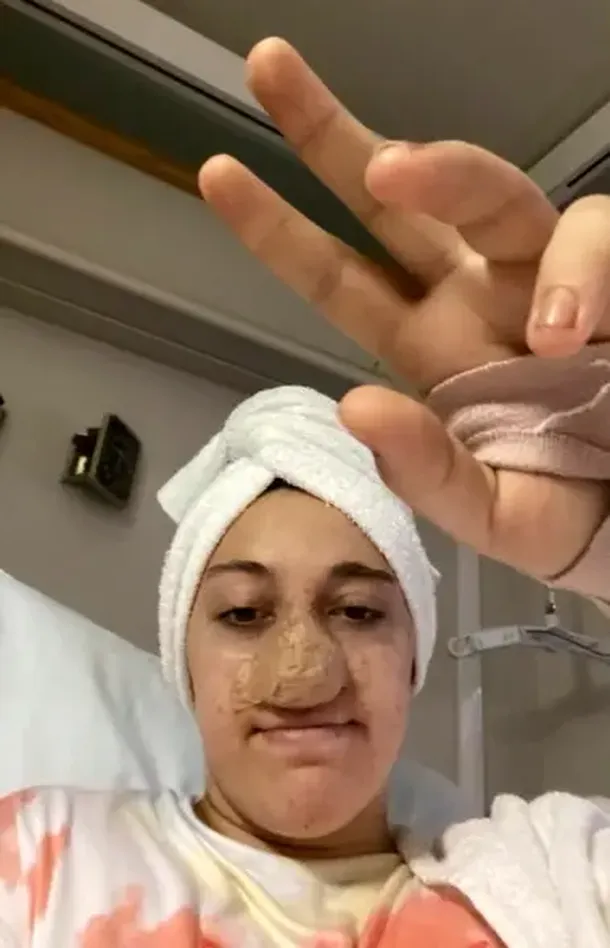 En un intento por reconstruir la punta de la nariz de Rowles los médicos extrajeron un pedazo de piel de la frente y cuero cabelludo de la joven, y unas semanas después comenzó a brotar el mismo pelo que tiene en la cabeza.