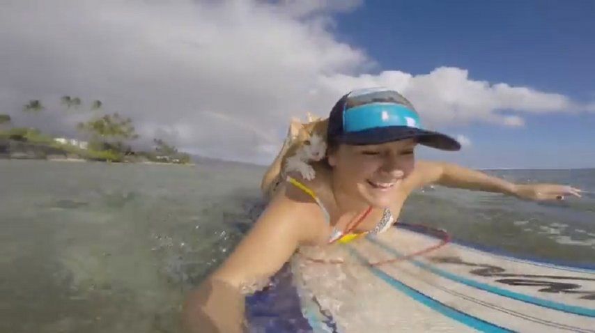 Kuli no es un gato cualquiera: a un año de ser adoptado por una pareja de Hawaii, en los Estados Unidos, desarrolló una técnica única para hacer surf junto a sus dueñas y conquistó la web con sus proezas acuáticas.