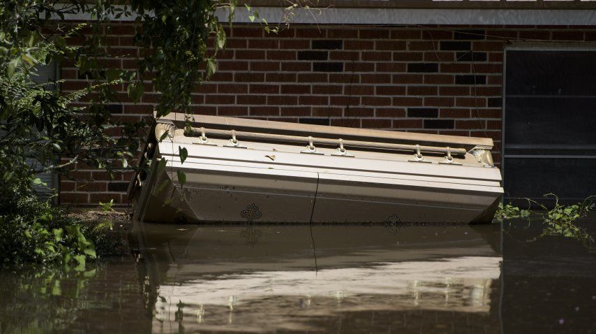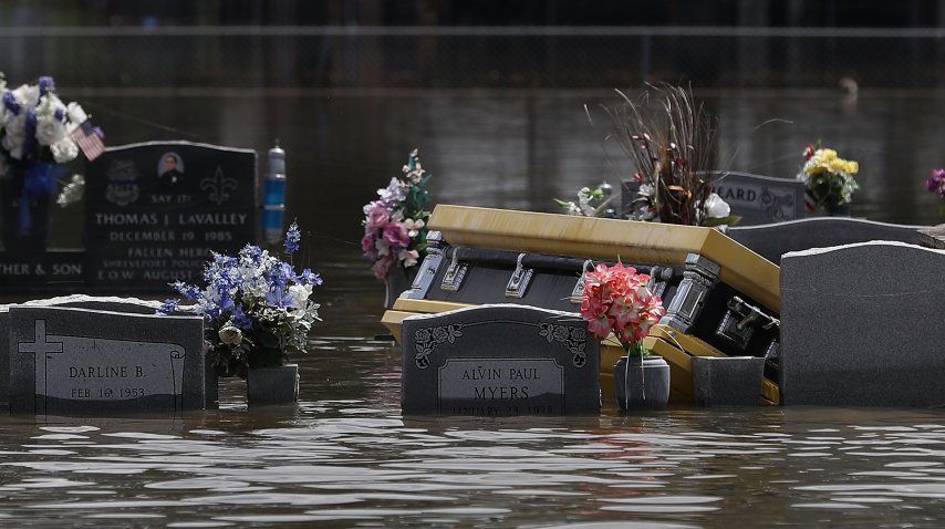 Varios cajones que estaban enterrados o en bóvedas del cementerio de Gonzales, a 20 minutos del río Mississippi, salieron flotando de su sitio durante la indundación y fueron vistos a la alturda de Sorrento y otras localidades.