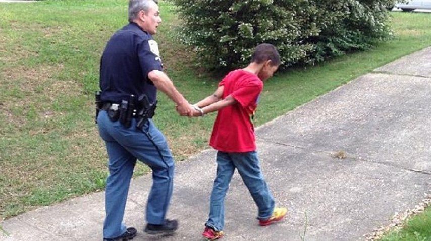 Hill luego de que su hijo se negara a hacer la tarea del colegio y le contestara mal a su maestra de quinto grado, decidió ayudada por la policía local, someter al pequeño a un simulacro y así darle una lección. Subió luego las imágenes a su cuenta de Facebook, donde se ve al chico estallando en llanto mientras los policías lo esposan y lo suben a un patrullero.