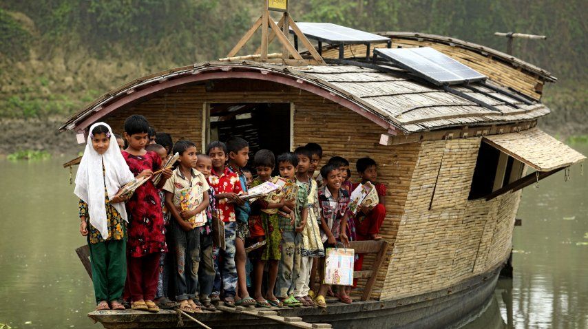 En Bangladesh para poder evitar inundaciones ubicaron escuelas en un barcos. Desde su lanzamiento en 2002, la iniciativa fue utilizada por unos 70.000 estudiantes. Lo mismo sucede en India, donde se instruye en estaciones de tren. La idea la tuvo una profesora que vio que muchos chicos iban ahí para pedir dinero.