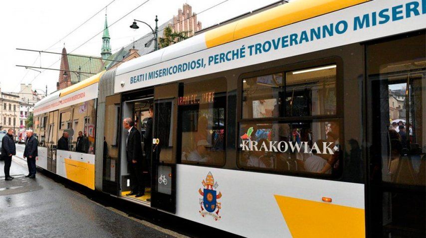 Como un ciudadano más, Francisco se toma el Tranvía en Cracovia