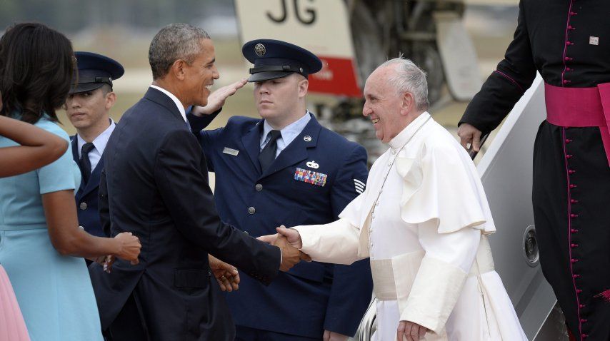 El presidente recibió al Sumo Pontífice acompañado por su mujer, Michelle, y sus hijas, Sasha y Malia, en la base aérea Andrews, ubicada en Maryland. La agenda religiosa incluirá una misa multitudinaria y un discurso en el Congreso nacional.