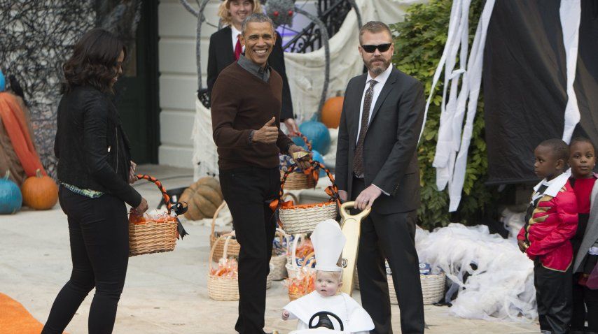 Como no podía ser de otro modo, en los Estados Unidos hasta la Casa Blanca se puso más aterradora que nunca y el presidente, Barack Obama, recibió a los niños que fueron a pedir golosinas y quedó encantado con el "mini Papa" que pasó a saludarlo.