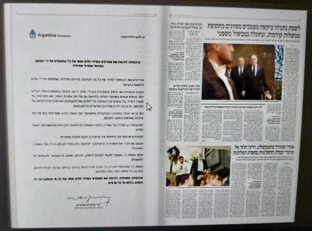 La solicitada argentina en los diarios de Israel
