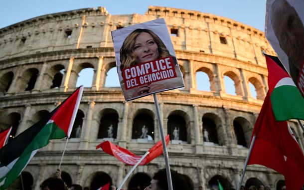 En medio del silencio del gobierno de Giorgia Meloni y una península prácticamente paralizada, ya que no funcionaron el transporte público urbano, los trenes, los aeropuertos ni los puertos, incluso con las autopistas bloqueadas, el pueblo italiano expresó su descontento con la situación que sufren los palestinos en la Franja debido al brutal avance de las fuerzas militares de Israel, que ya ha causado cerca de 70.000 muertes.