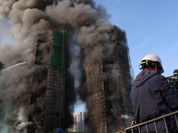 Las llamas se propagaron por el andamiaje de bambú instalado en un complejo habitacional al norte de la península hongkonesa.
