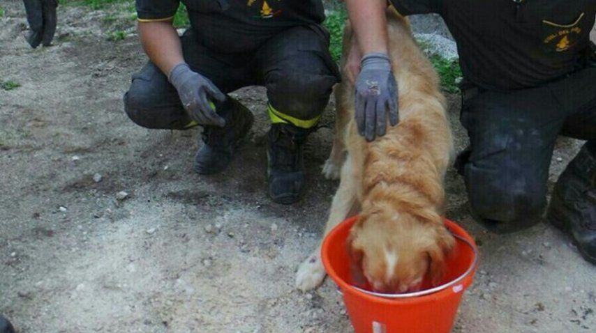 Un perro logró sobrevivir nueve días bajo los escombros de una casa en Italia