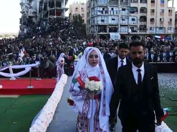 Jóvenes parejas celebraron un casamiento masivo en las ruinas de Palestina: "Momento de felicidad"