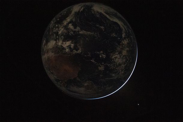 - Estas dos imágenes fueron tomadas por el astronauta Reid Wiseman con solo minutos de distancia entre sí. La marcada diferencia se debe a la configuración de la cámara: en la primera, una velocidad de obturación más lenta permitió la entrada de mucha más luz de la Tierra, mientras que la velocidad de obturación más rápida en la segunda resalta el brillo nocturno de nuestro planeta.