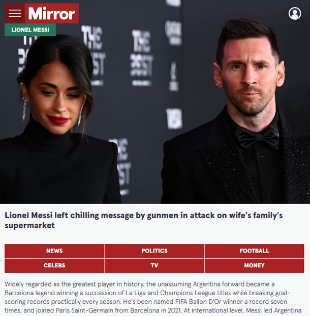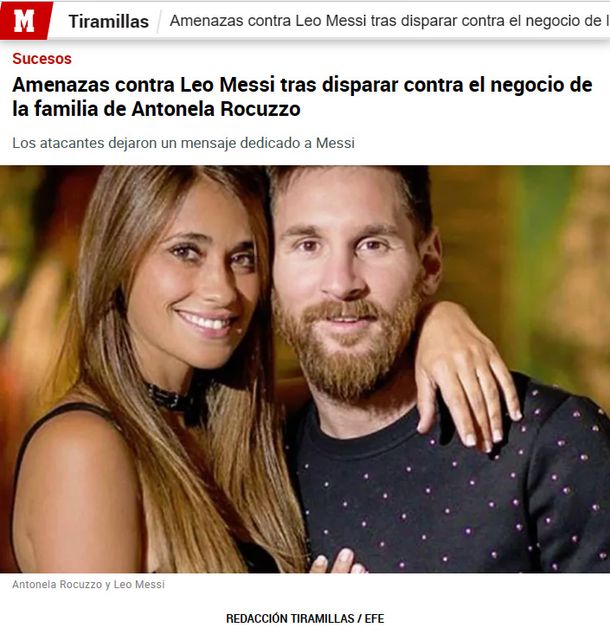 En tanto, su colega español, el diario Marca, indicó: "Amenazas contra Leo Messi tras disparar con el negocio de la familia de Antonella Roccuzzo", y agregaron: "Los atacantes dejaron un mensaje dedicado a Messi".